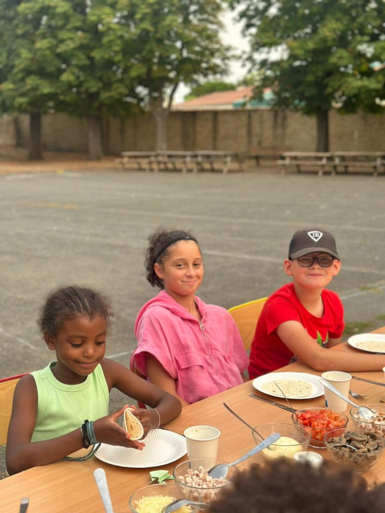 😴 Les Street Art, quant à eux, ont profité d’un moment de repos bien mérité après leur escapade au camping.Et pour fêter les retrouvailles de toute la colo, nous avons partagé un grand repas tous ensemble 🌯 : chacun a pu composer son propre wrap avec les ingrédients de son choix.