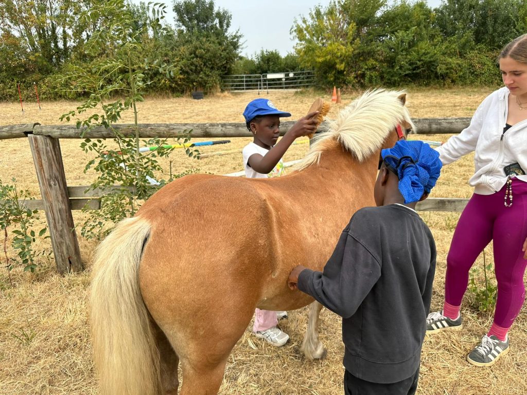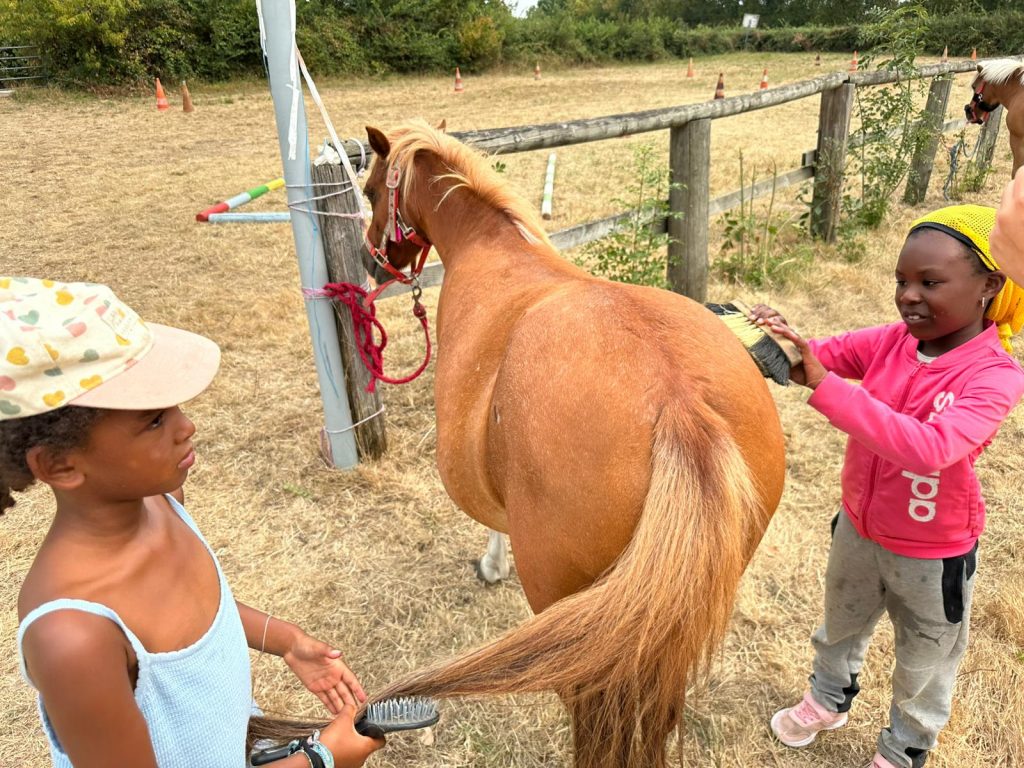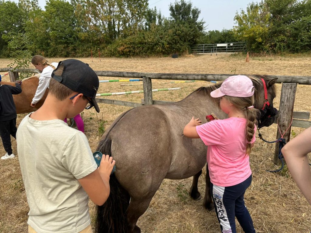 Ils ont commencé par brosser et préparer les poneys afin de créer un premier lien avec leur compagnon du jour. Puis, à tour de rôle, ils ont appris à diriger, avancer et s’arrêter. Très vite, chacun a réussi à être totalement autonome avec son poney 👏.