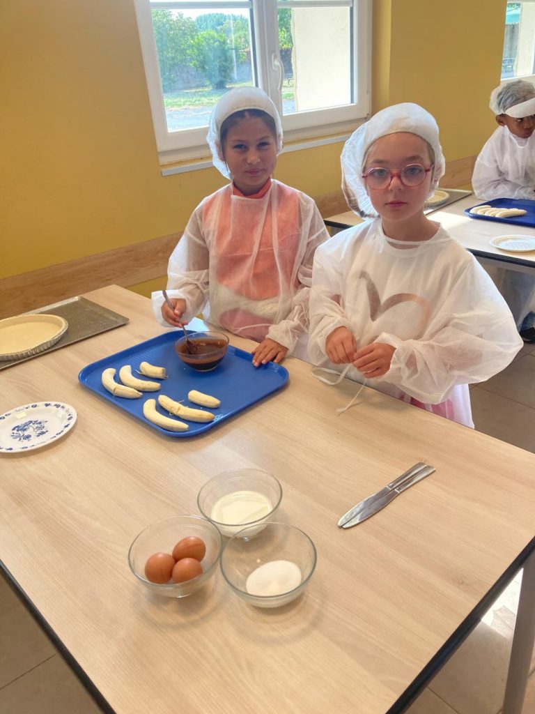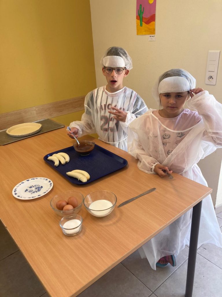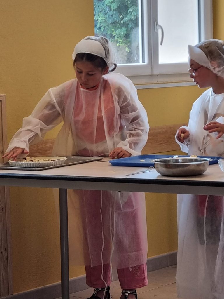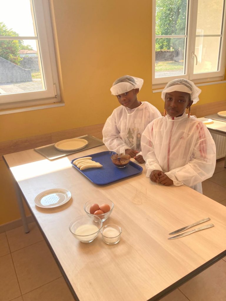 👨🍳 Un premier groupe a enfilé les tabliers pour rejoindre Yohann, notre chef cuisto : au menu, de délicieuses tartes chocolat-banane 🍌🍫 préparées avec soin… et amour ! Autant vous dire que l’odeur dans la colo était irrésistible 😋