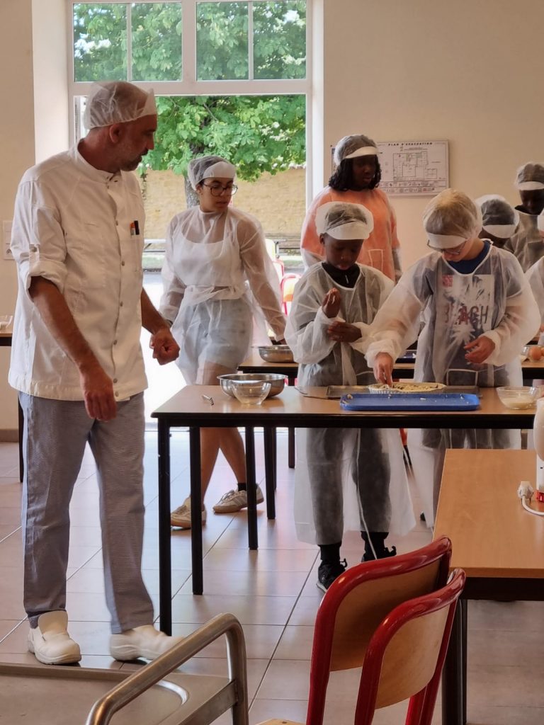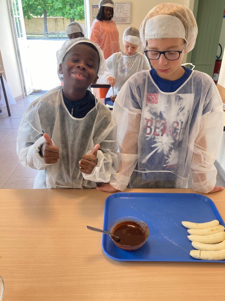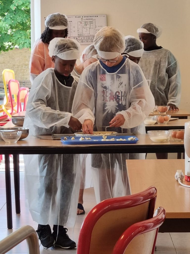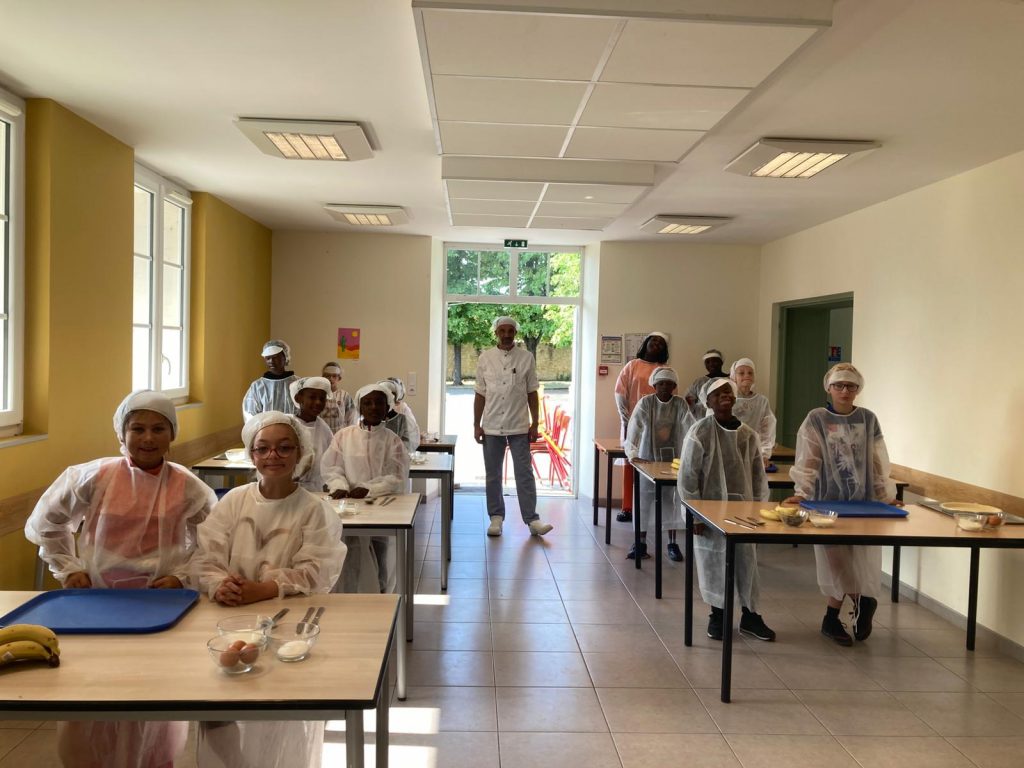 👨🍳 Un premier groupe a enfilé les tabliers pour rejoindre Yohann, notre chef cuisto : au menu, de délicieuses tartes chocolat-banane 🍌🍫 préparées avec soin… et amour ! Autant vous dire que l’odeur dans la colo était irrésistible 😋