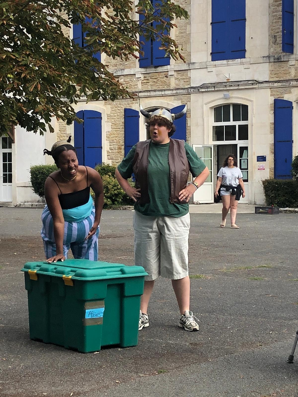 Cette nuit, nous nous sommes fait dérober nos emblèmes par un super vilain. Mais heureusement, le vieux gaulois Panoramix a décidé de nous aider ! Il est venu avec Astérix et Obélix pour nous montrer les effets de la potion ! Après ça, nous sommes partis en forêt pour créer nos bannières, nos noms d’équipe et nos cris de guerre.