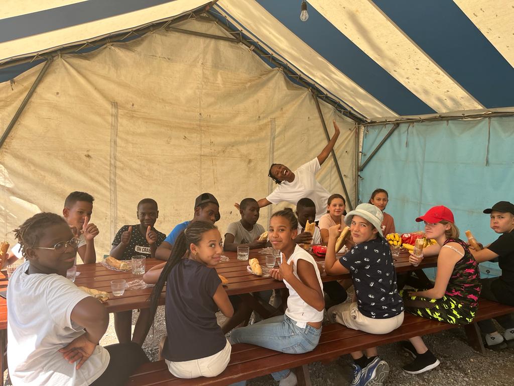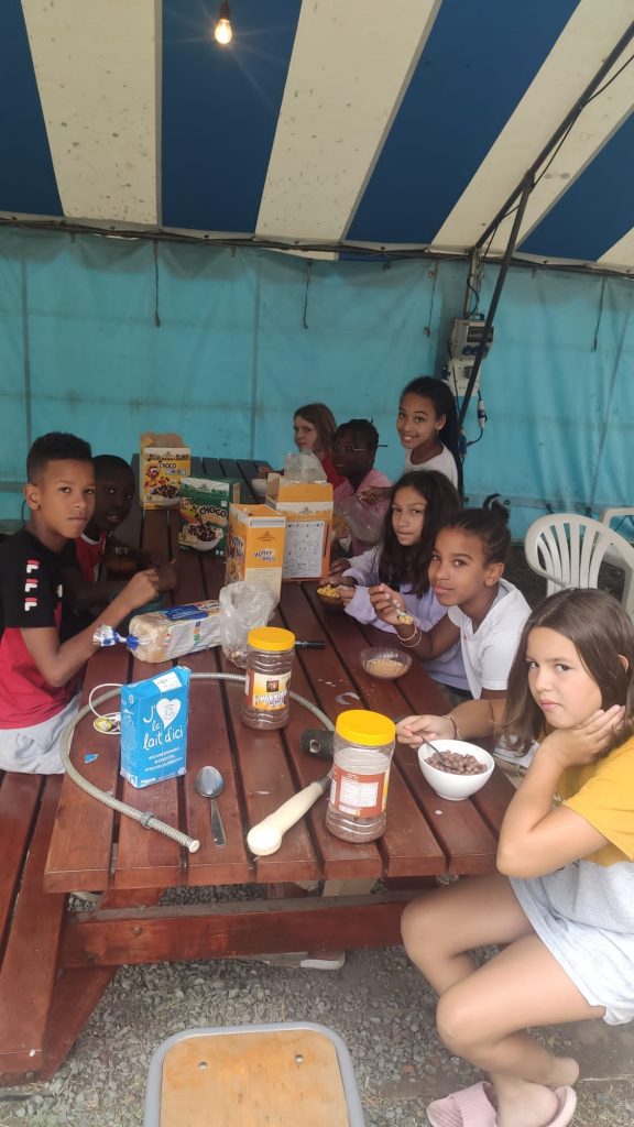 Le camping c’était super bien, on a pu se laver au tuyau et hier soir on s’est raconté des histoires qui font peur mais on a même pas eu peur.