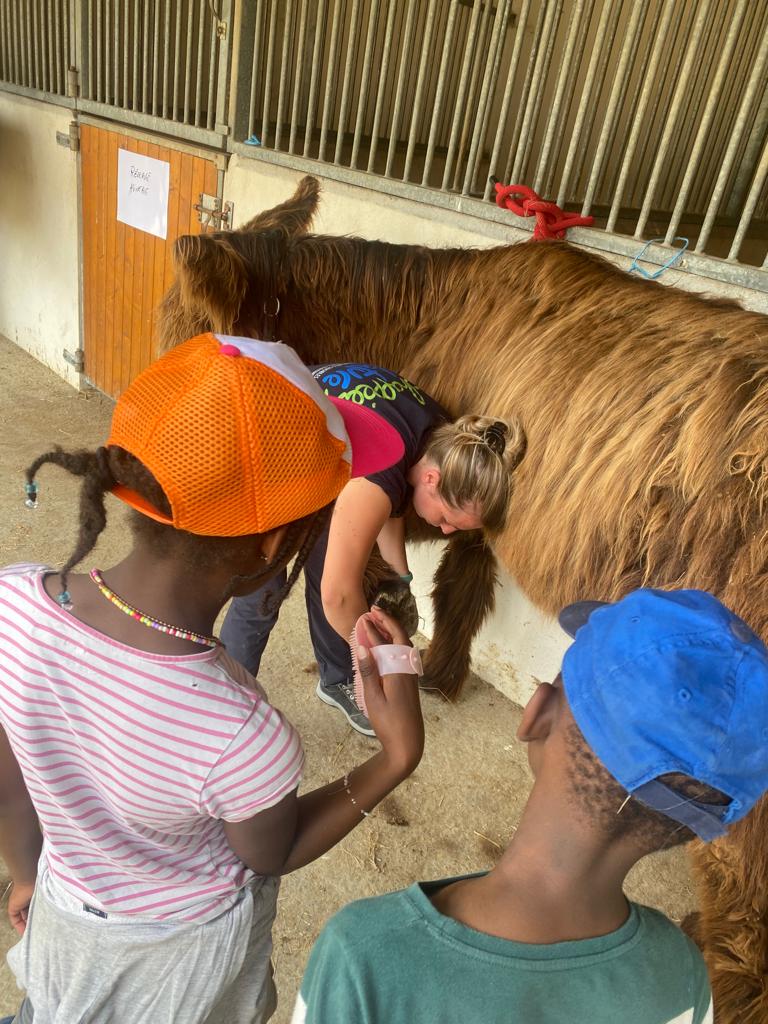 Pour les CIA, aujourd’hui on est allé à l’asinerie. En arrivant, on a pu visiter la ferme et caresser des bébés ânes mais aussi leurs papas et leurs mamans. Après manger, on a brosser les ânes et ensuite on leur a fait faire un parcours pour apprendre à les guider. Et puis on a fini en allant faire un petit tour dans la forêt c’était trop trop génial, on a bien fait des caresses et on a bien profité. Ce soir, on va faire un carré magique, c’est un jeu où on doit se déguiser c’est rigolo les animateurs nous ont dit.