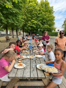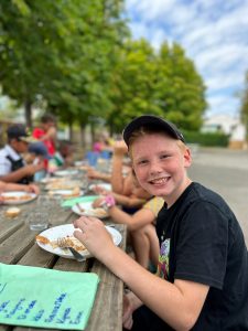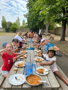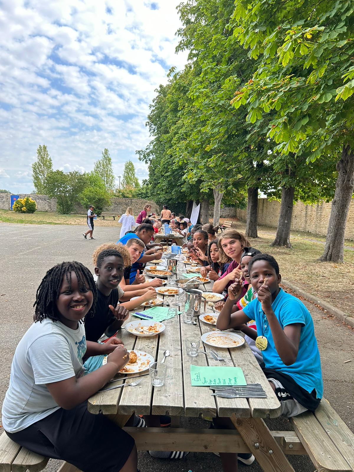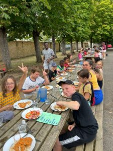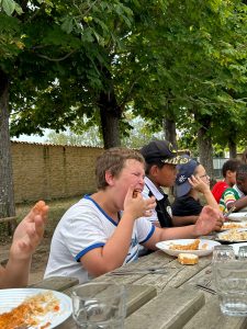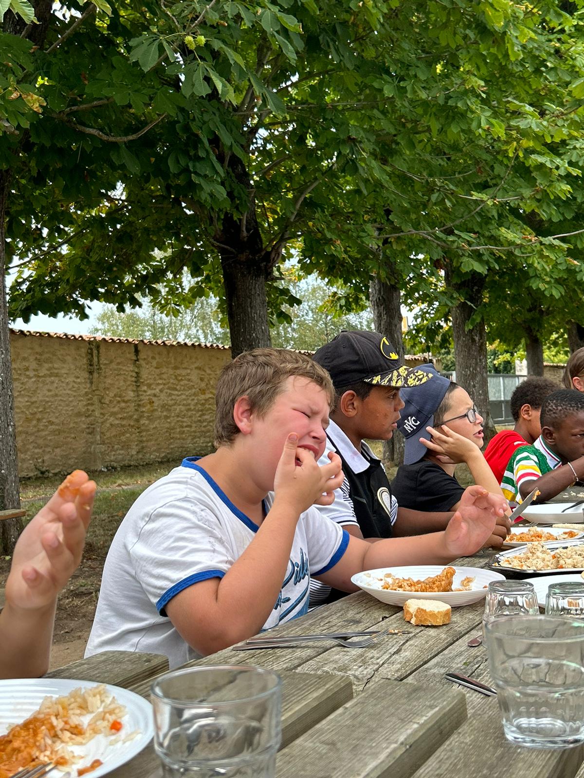 Cette après-midi, nous sommes allés dans la forêt pour capturer la sorcière Rafika. On devait trouver des personnages pour qu’ils signent une feuille dans un ordre précis. Les gagnants ont pu accrocher Rafika à un arbre. Après avoir fêté notre victoire, nous avons repris l’avion direction la France. Ce soir, nous mangeons des pizzas puis nous irons à la boom 🙂
