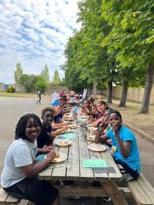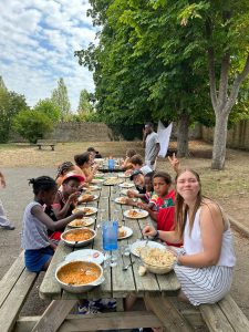 Ce midi, on a mangé du mafé, c’était trop bon et en dessert on a mangé du flan à la noix de coco. Un super bon repas !
