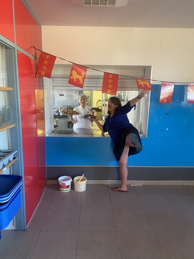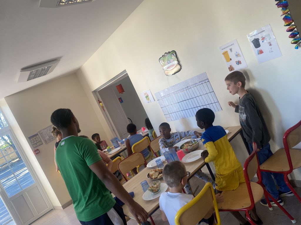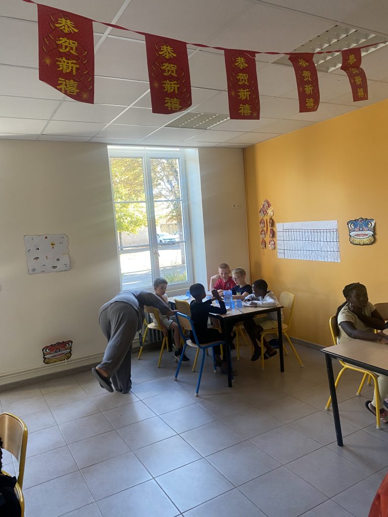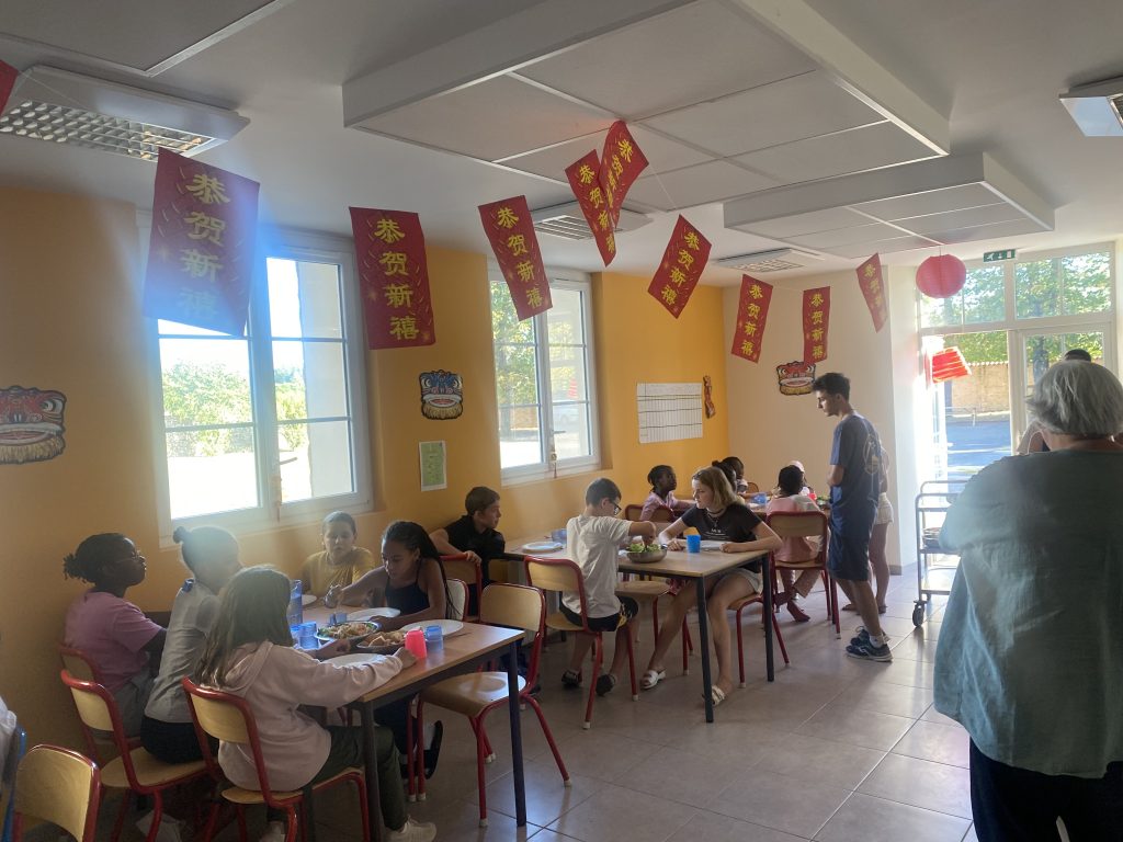 Ce soir, les enfants participent à un repas chinois, pour l’occasion nous avons décoré les lieux et adapter le menu au thème : salade fraicheur, riz cantonais avec poulet au coco et en dessert des beignets ananas et pomme ! Ils se sont régalés