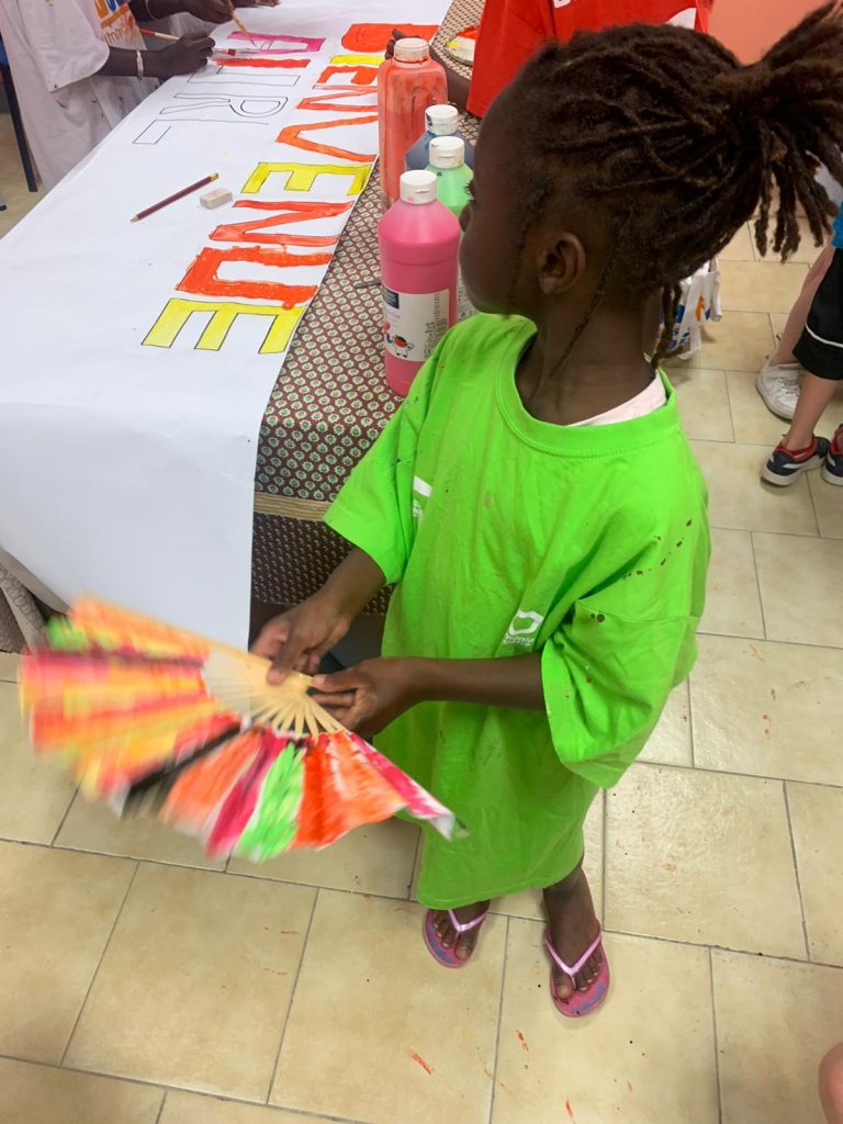 Aujourd’hui nous avons fait des sports collectifs, de la décoration pour la soirée à thème et aussi des déguisements en vue du grand jeu qui approche.