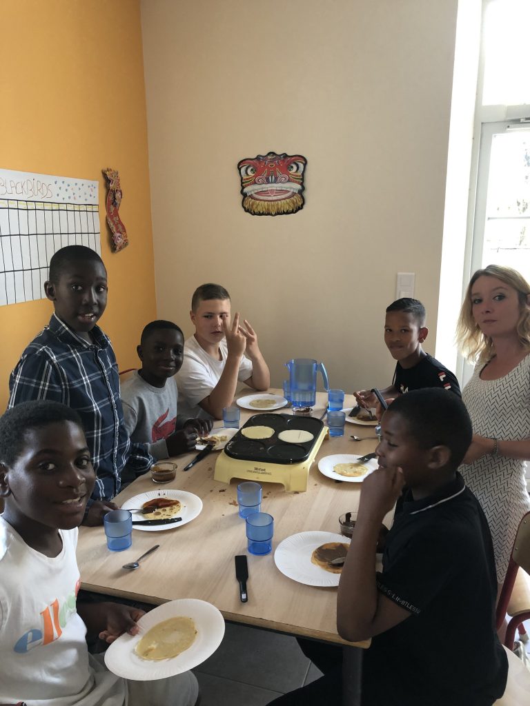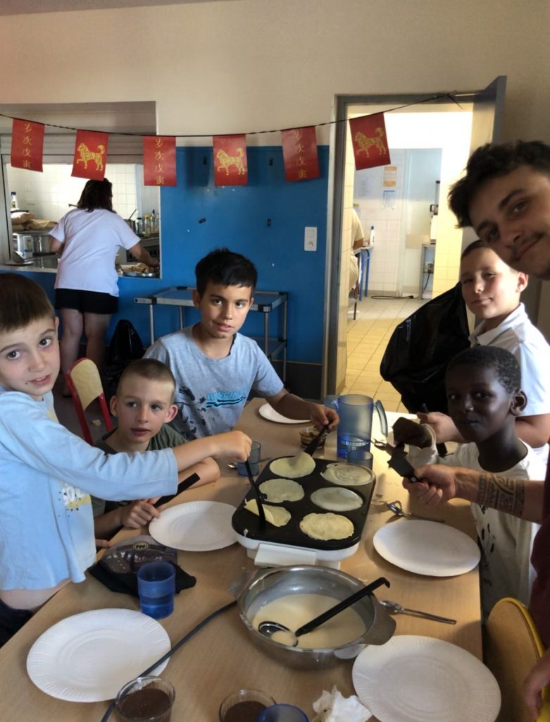Ce soir pour le repas nous avons proposé crêpes party en dessert et autant vous dire que les enfants se sont régalés et sont les plus heureux. Nous allons clôturer cette journée exceptionnelle avec une boom !