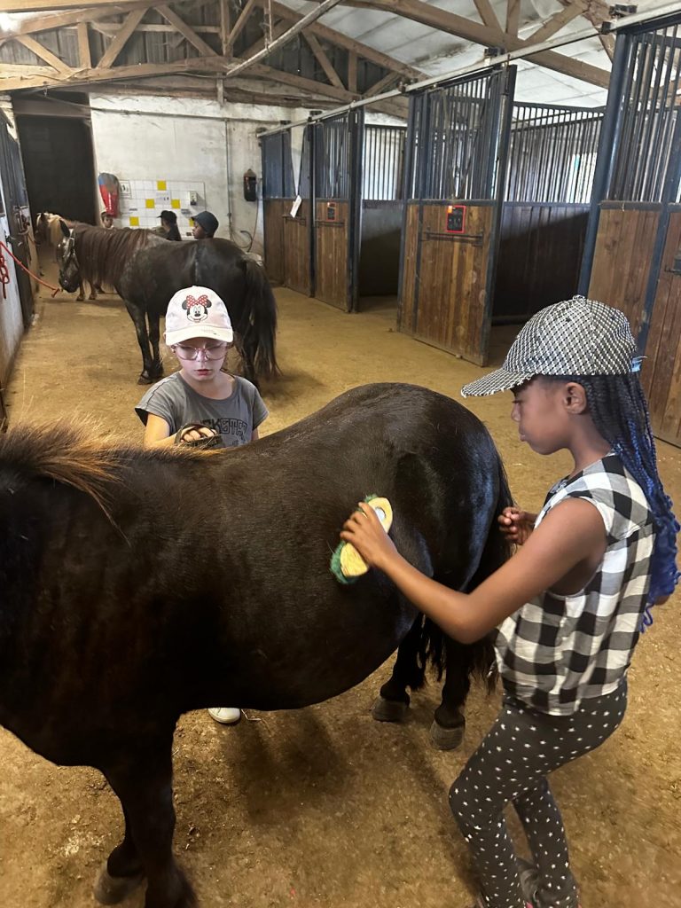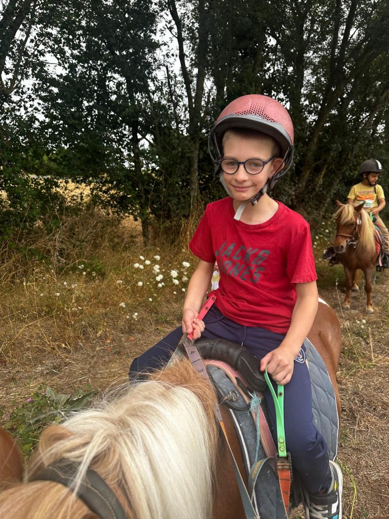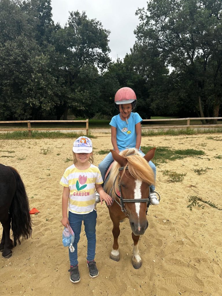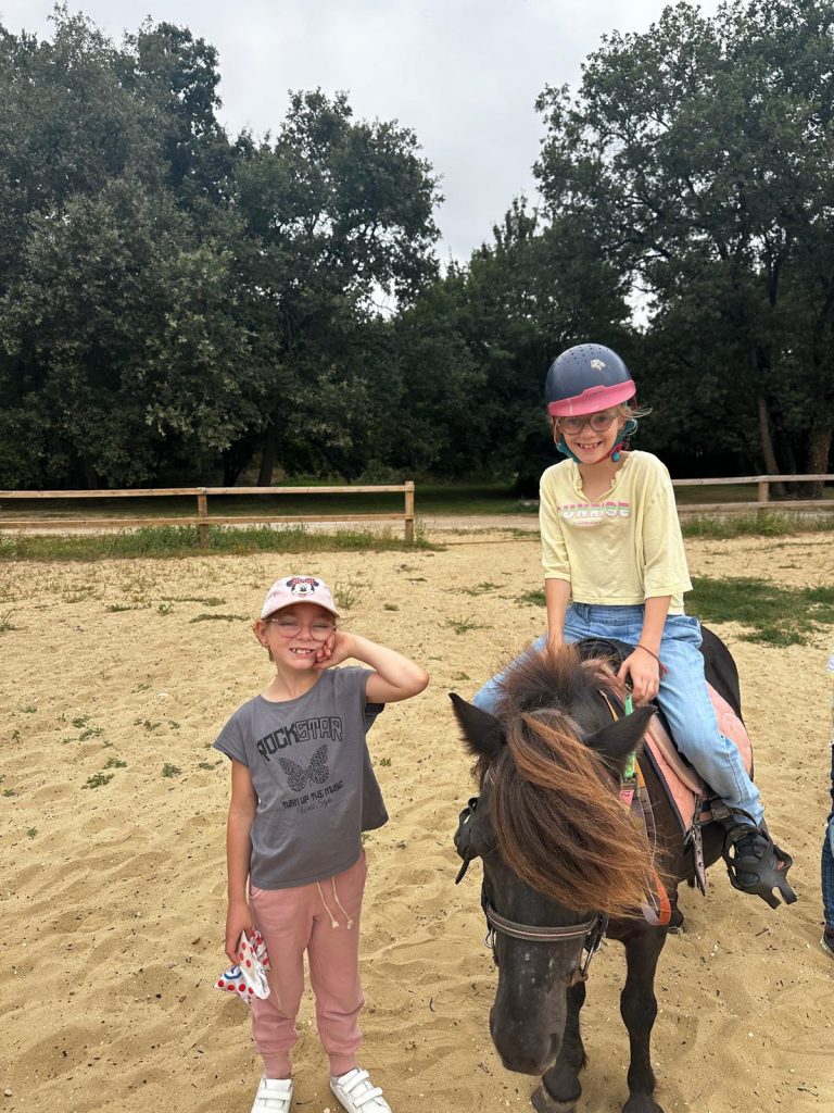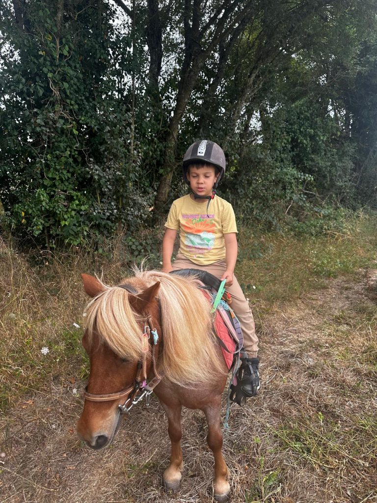 Ce matin, je me suis réveillée trop contente parce qu’on est allés faire du poney ! D’abord, on est allés chercher les poneys, et on les a coiffés et brossés (la crinière et la queue). Après, on a mangé des sandwichs et on a bu plein d’eau parce qu’il faisait super chaud. Après le repas, on a fini de les brosser et après on est montés dessus. C’était trop chouette parce que la monitrice avait fait un parcours dans la forêt. Mon poney s’appelait Lune et elle était toute noire. Après, on est rentrés pour prendre le goûter et je suis déjà bien fatiguée. Ce soir les animateurs m’ont dit qu’on allait faire des petits jeux sur le stade, je suis pressée de savoir ce qu’on va apprendre comme jeu aujourd’hui.