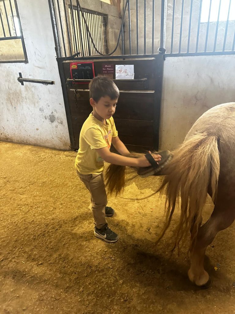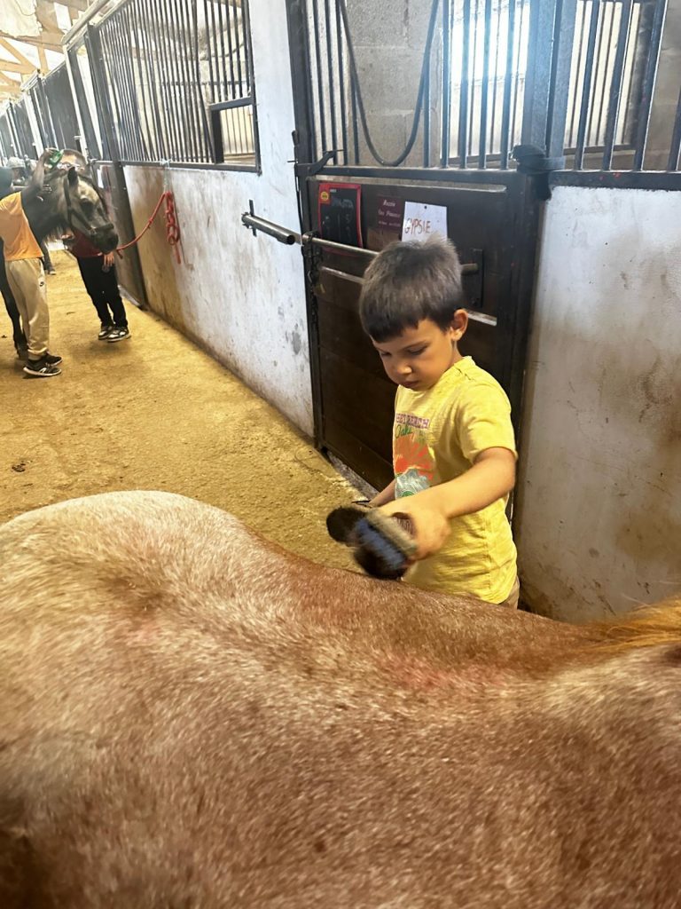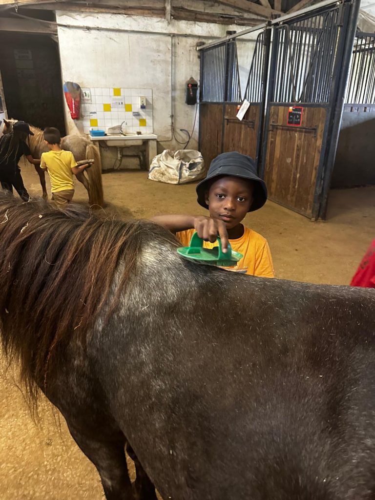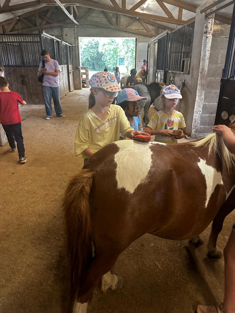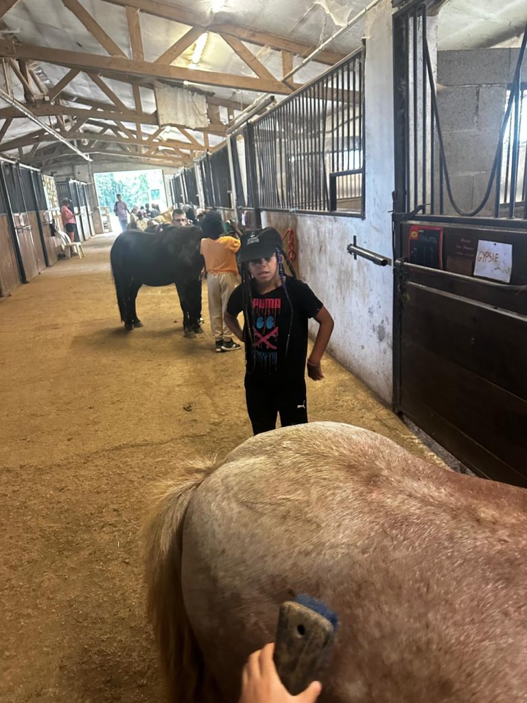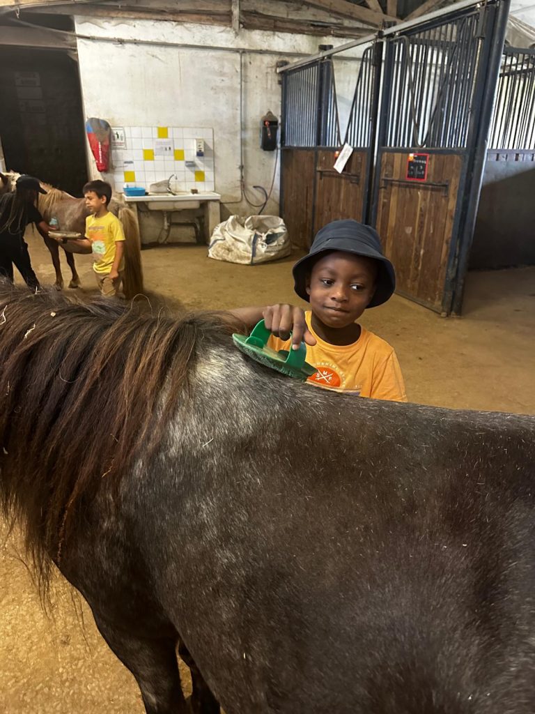 Ce matin, je me suis réveillée trop contente parce qu’on est allés faire du poney ! D’abord, on est allés chercher les poneys, et on les a coiffés et brossés (la crinière et la queue). Après, on a mangé des sandwichs et on a bu plein d’eau parce qu’il faisait super chaud. Après le repas, on a fini de les brosser et après on est montés dessus. C’était trop chouette parce que la monitrice avait fait un parcours dans la forêt. Mon poney s’appelait Lune et elle était toute noire. Après, on est rentrés pour prendre le goûter et je suis déjà bien fatiguée. Ce soir les animateurs m’ont dit qu’on allait faire des petits jeux sur le stade, je suis pressée de savoir ce qu’on va apprendre comme jeu aujourd’hui.