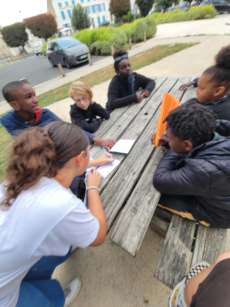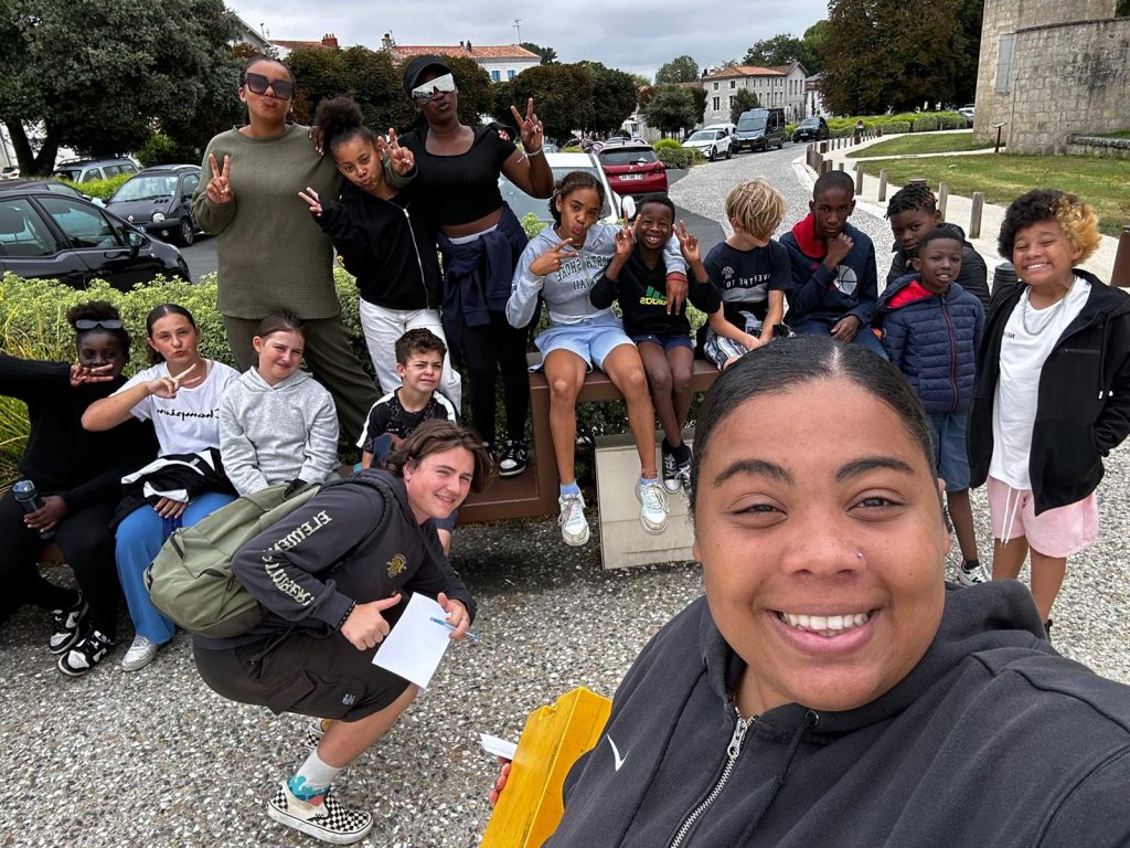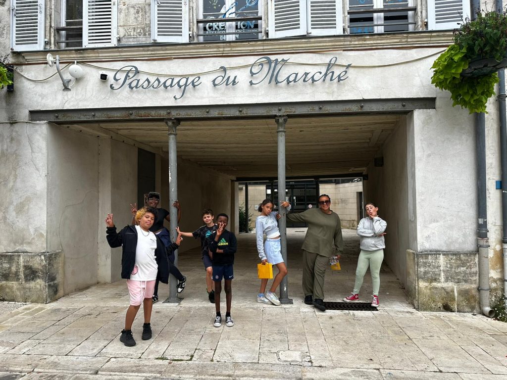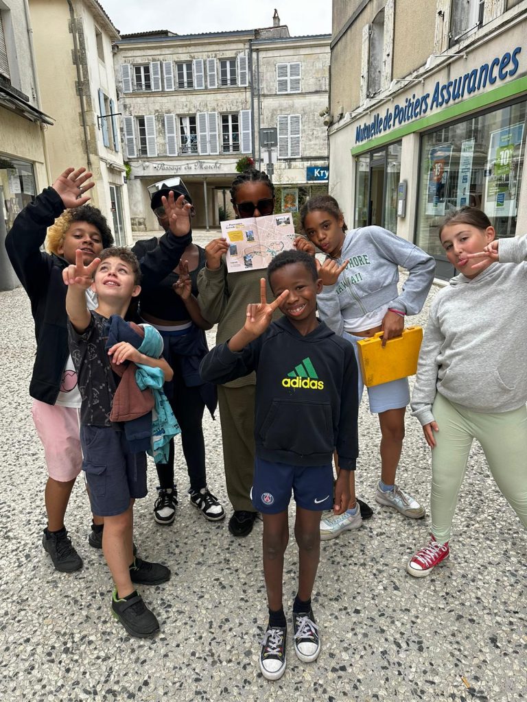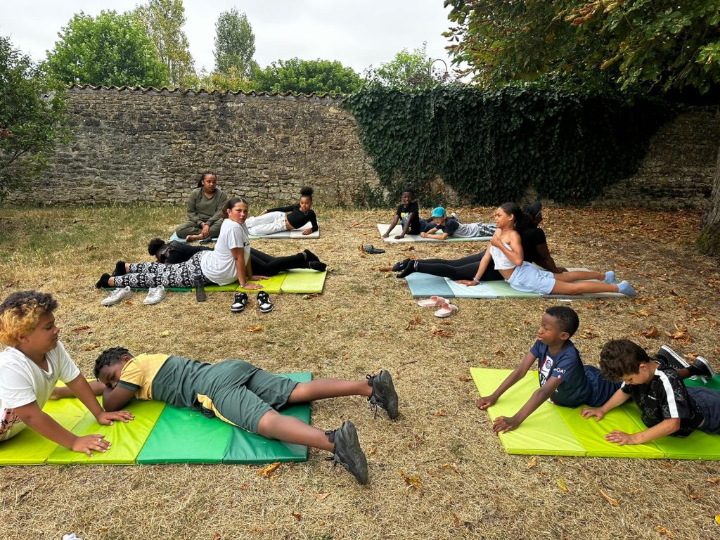 Ce matin, on a fait du yoga. C’était trop bien parce qu’on a fait des échauffements et des trucs pour bien respirer. On a écouté de la musique douce, et du coup, on a commencé la journée tout relax. J’ai bien aimé. Après, on est allé manger de la semoule avec des boulettes, et en dessert, on a eu de la mousse à la fraise. Trop bon ! Après manger, on a eu un moment pour faire ce qu’on voulait, alors moi, j’ai joué au foot. L’après-midi, on est allé à Surgères avec nos animateurs, Marceau et Joséphine. On avait une liste de défis à faire, comme trouver un truc gratuit dans un magasin, faire un bouquet de fleurs, demander aux gens de chanter, ou compter les bancs dans la ville. Moi, je suis allé voir le château de Surgères. Après, on a pris le goûter, et j’ai trop hâte de voir ce qu’on va faire ce soir !