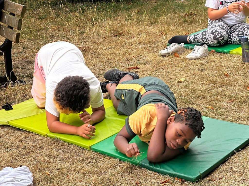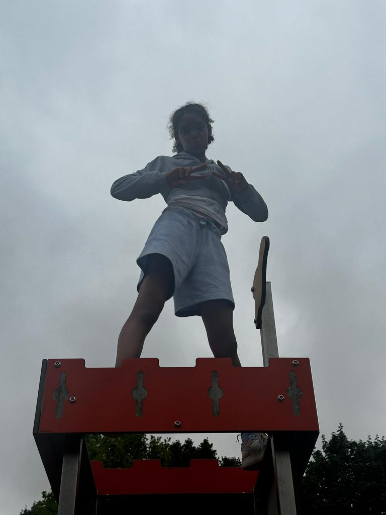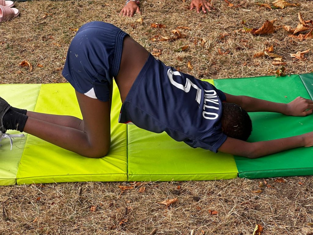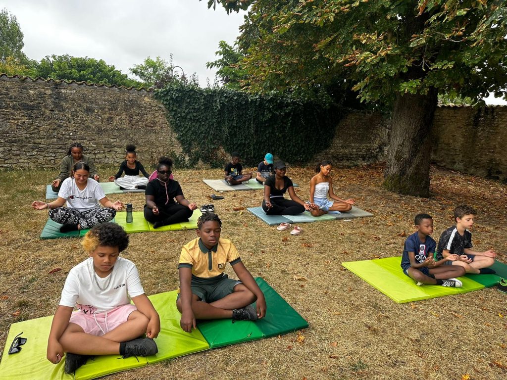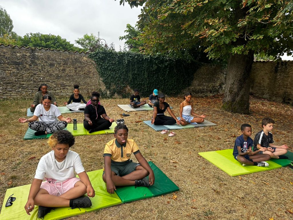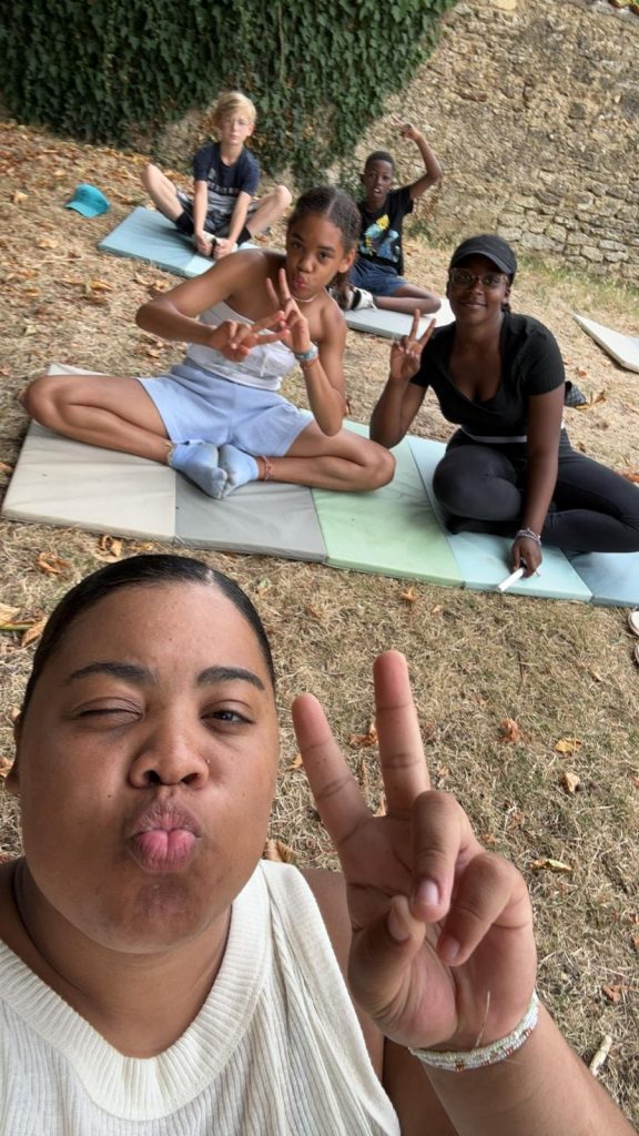 Ce matin, on a fait du yoga. C’était trop bien parce qu’on a fait des échauffements et des trucs pour bien respirer. On a écouté de la musique douce, et du coup, on a commencé la journée tout relax. J’ai bien aimé. Après, on est allé manger de la semoule avec des boulettes, et en dessert, on a eu de la mousse à la fraise. Trop bon ! Après manger, on a eu un moment pour faire ce qu’on voulait, alors moi, j’ai joué au foot. L’après-midi, on est allé à Surgères avec nos animateurs, Marceau et Joséphine. On avait une liste de défis à faire, comme trouver un truc gratuit dans un magasin, faire un bouquet de fleurs, demander aux gens de chanter, ou compter les bancs dans la ville. Moi, je suis allé voir le château de Surgères. Après, on a pris le goûter, et j’ai trop hâte de voir ce qu’on va faire ce soir !