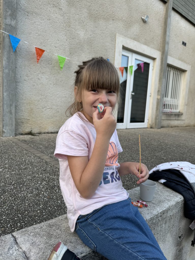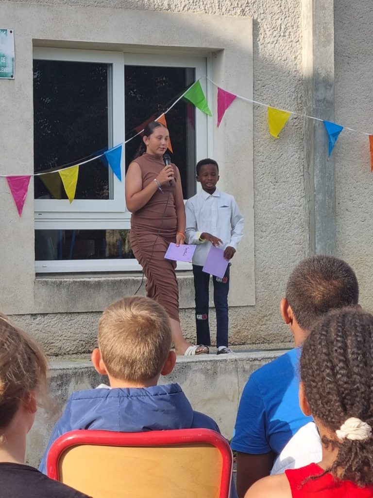 Après le spectacle, on a lancé le festival ! Comme l’année dernière, des « célébrités » sont venues de partout pour chanter en direct leurs chansons. On s’est régalés avec des petits fours, des hot dogs, et pour le dessert, Yohann, notre cuisinier, nous a préparé une énorme pièce montée. C’était trop bon, et on l’a tous applaudi super fort !